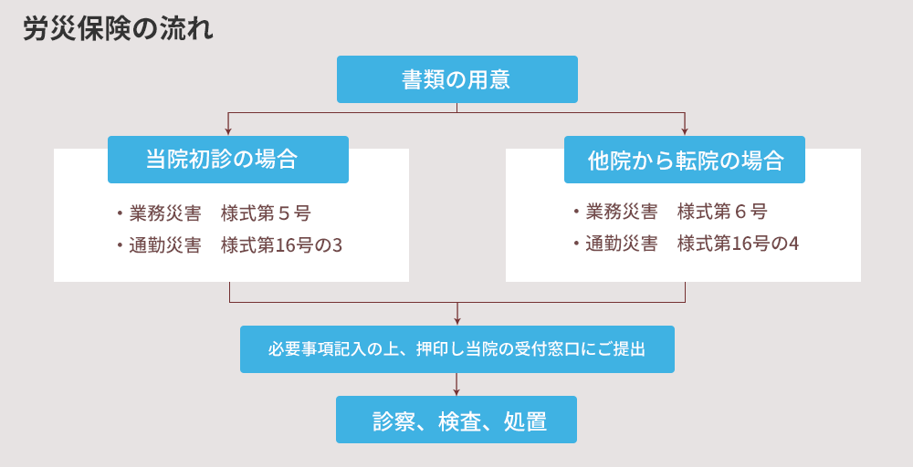 交通事故でおかかりの方は、損害保険会社から先にご連絡をいただいたのち、ご来院ください。