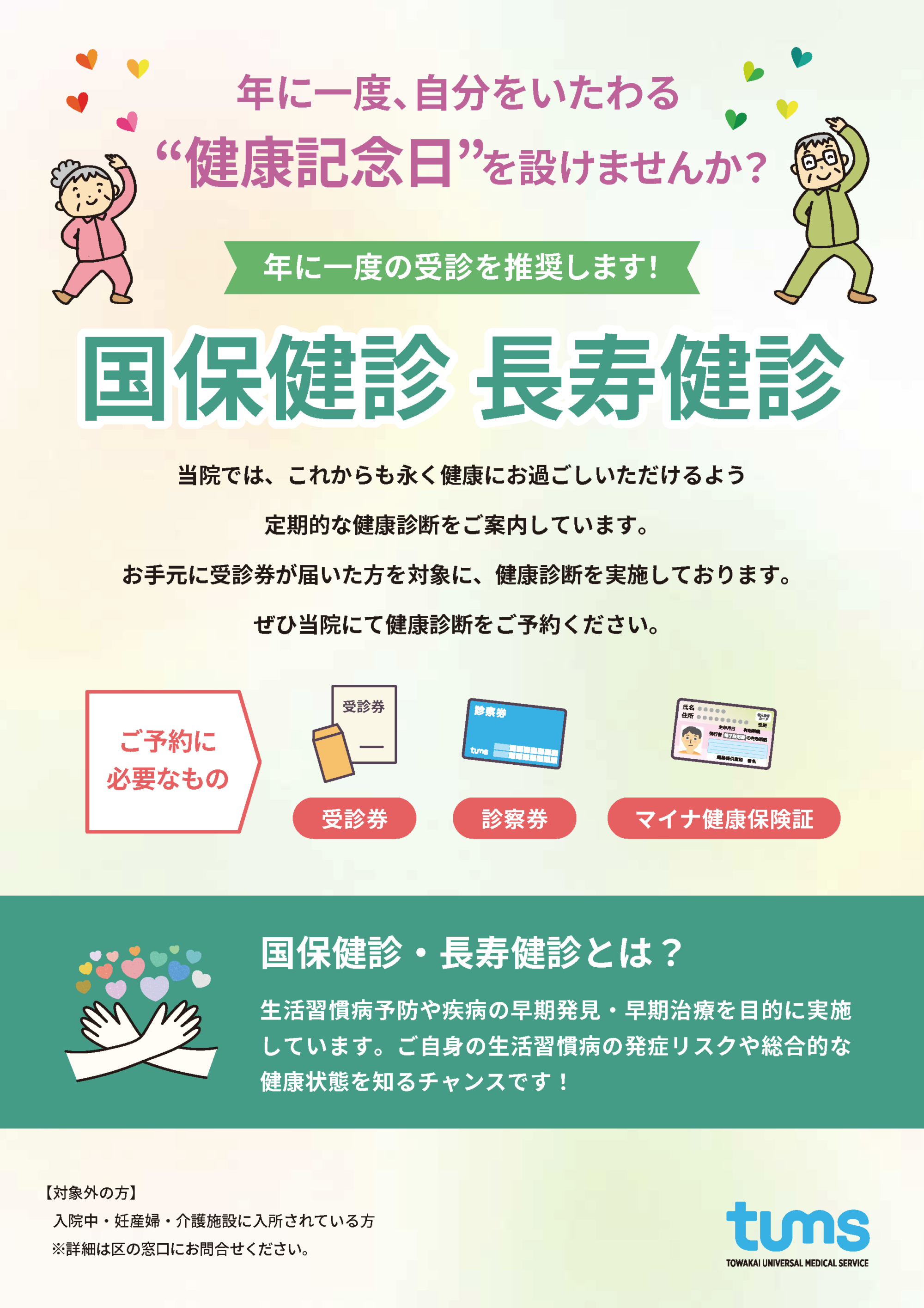 当院では、これからも永く健康にお過ごしいただけるよう定期的な健康診断をご案内しています。