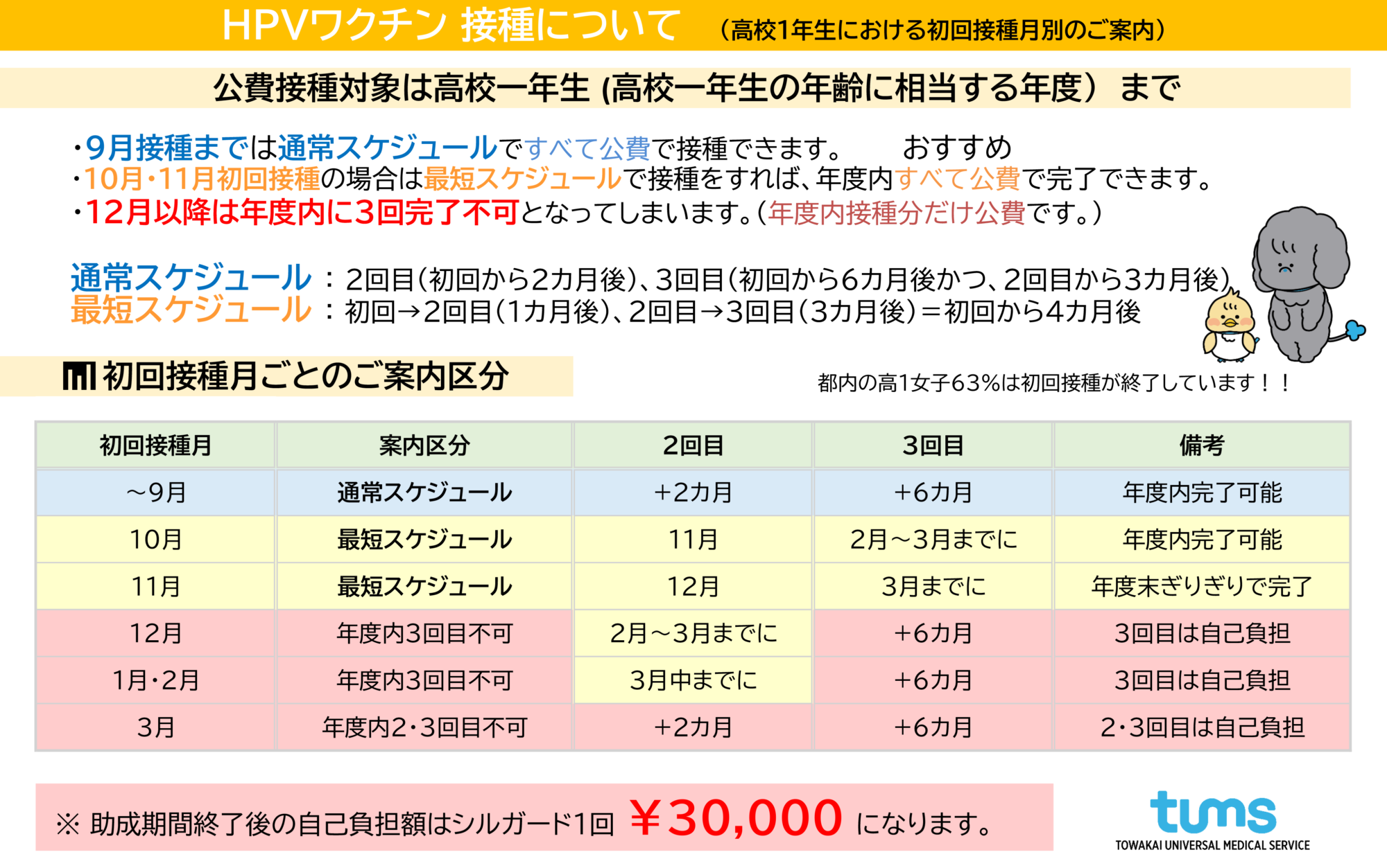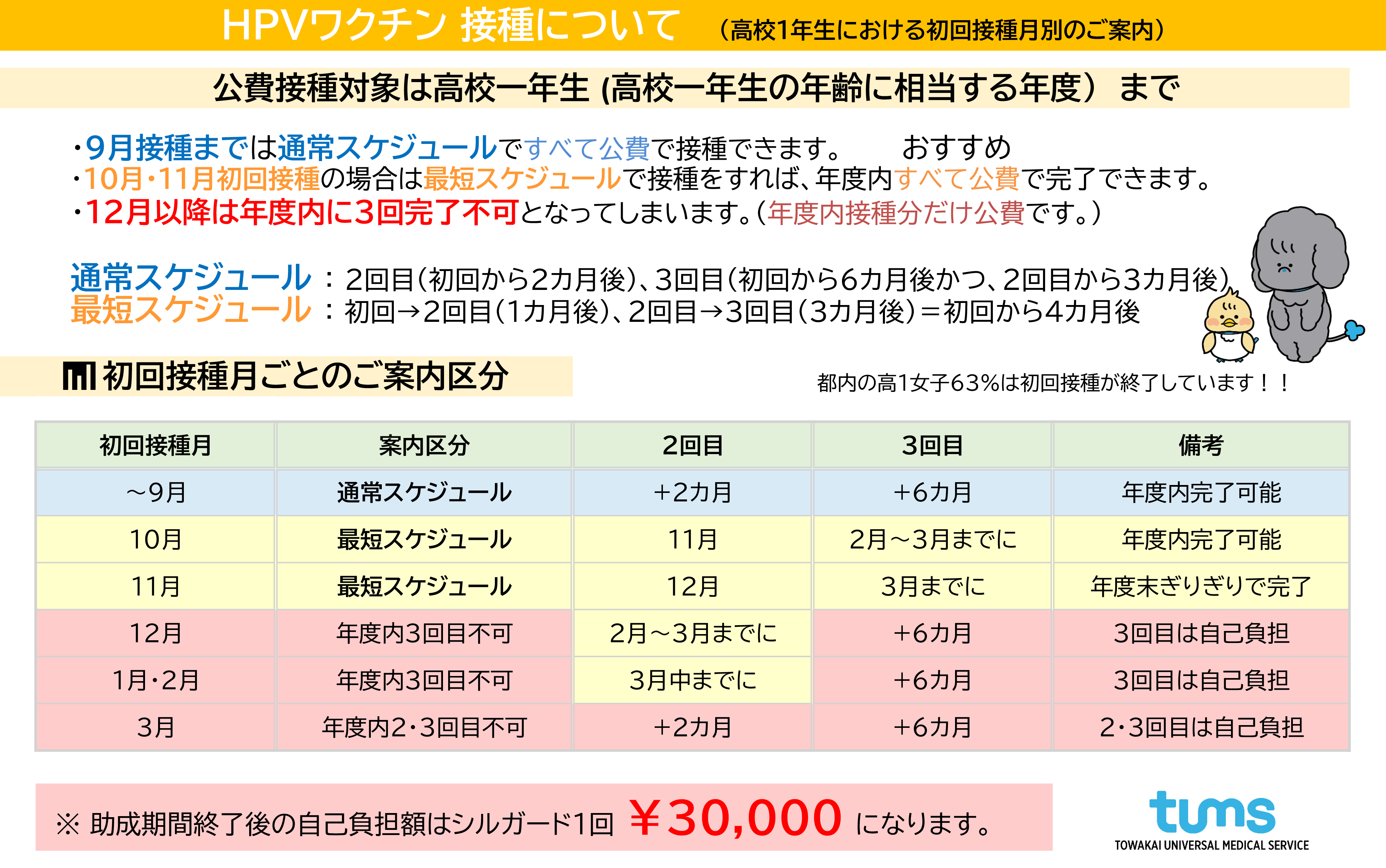 特に高校1年生の方は、公費で接種できる期間が限られています。接種は複数回に分けて行うため、開始時期によっては年度内にすべての接種が完了できない場合があります。
