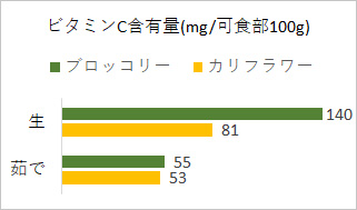 特にビタミンCはブロッコリーと比べ、茹でることによる損失が少なく、生でも食べられるのがメリットです。